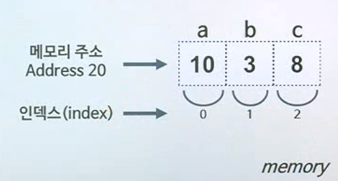 2. 첫번째 변수에서 몇 번째에 떨어져 있는지 그 위치값만 알고 있으면 된다 그 위치값을 "인덱스" 라고 이야기한다