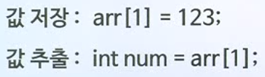 참조 변수와 인덱스 가지고 접근하는데 arr[1]; 에 있는 1번째 있는 데이터를 선택을 하고 가져와서 어디에 집어 넣어라? int num 이라는 변수 안에다가 집어 넣어라