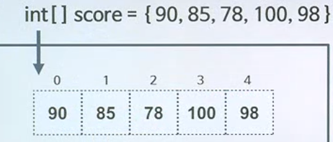 int[] score = new int[5];//int[5] 개짜리 배열을 만들었고 int 니까 초기화가 0으로 되었을것이다