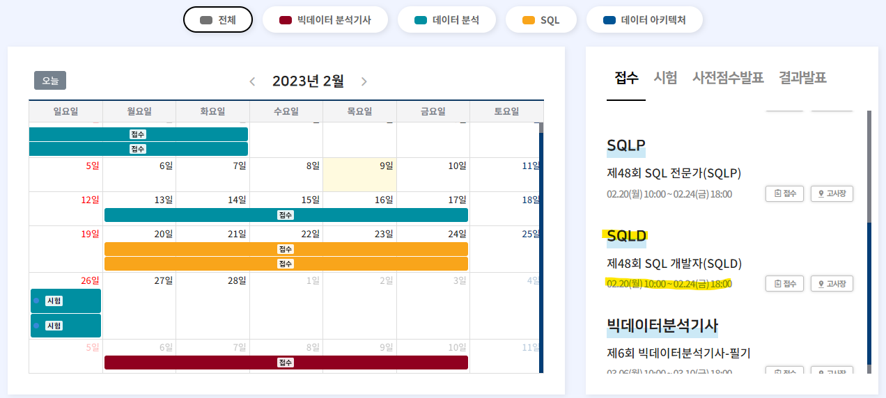23년도 sqld 자격증 준비를 위해 SQLD시험 일정 알아보기