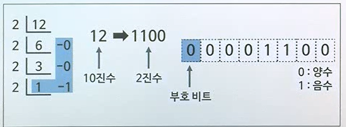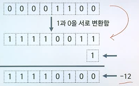 설명 : 일단 양수값(00001100) 에서 0과 1을 서로 변환(바꾼) 하고 마지막에 1을 더하면 그게