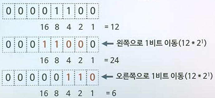 비트 이동 연산(곱하기,나누기 할때 이용하면 쉽게 할 수 있다 속도도 빠르고)