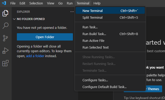 2. 에디터 상단 Terminal- New Terminal 클릭
