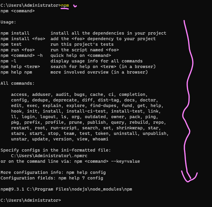 2. node.js를 설치하고 명령프롬프트 창에서 node.js가 잘 설치 되었는지 npm 명령어를 실행해 본다.
